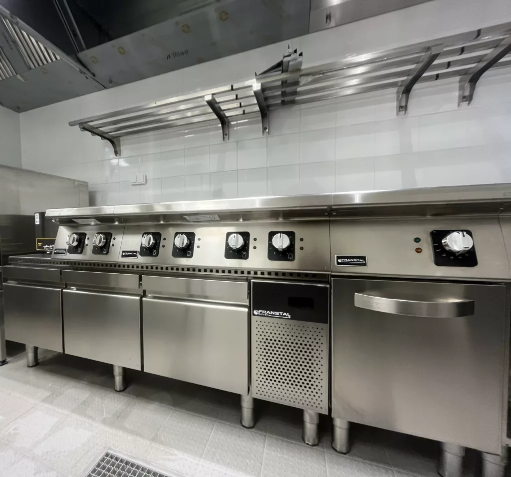 -Une nouvelle ligne de cuisson comprenant une friteuse professionnelle, plusieurs plaque à induction, une plancha et plusieurs fours professionnel.